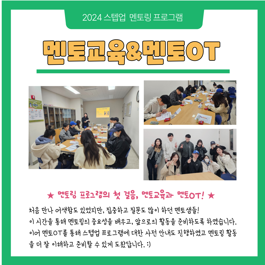 다양한 활동을 통해 멘티들의 꿈과 가능성을 넓히는 것을 목표로 합니다.