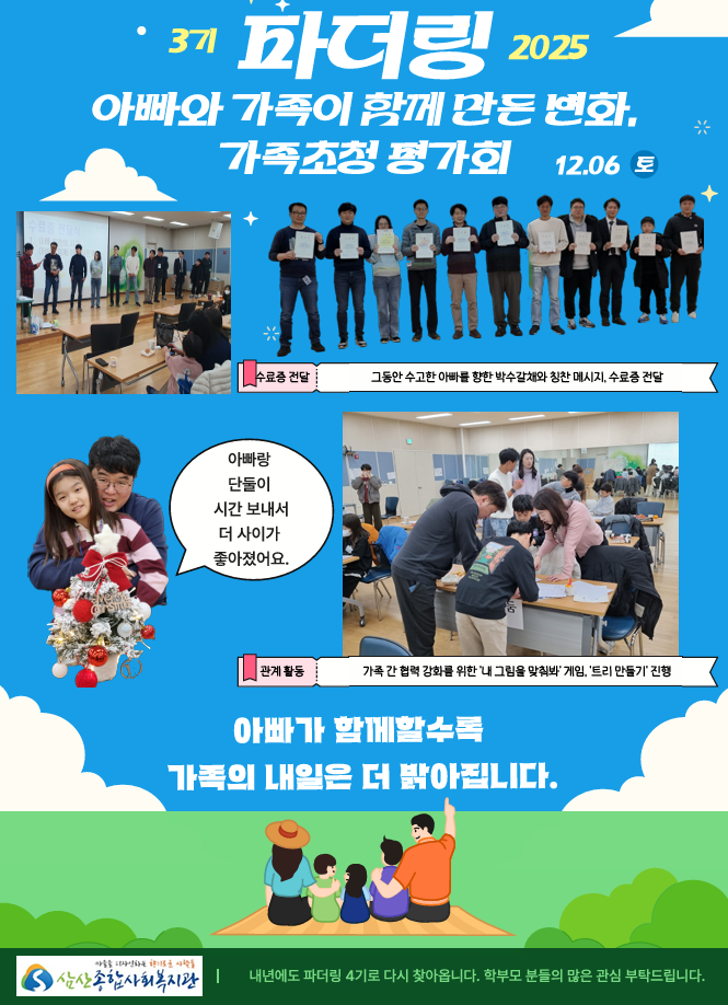 내용 : 파더링 3기 가족 초청 평가회 진행