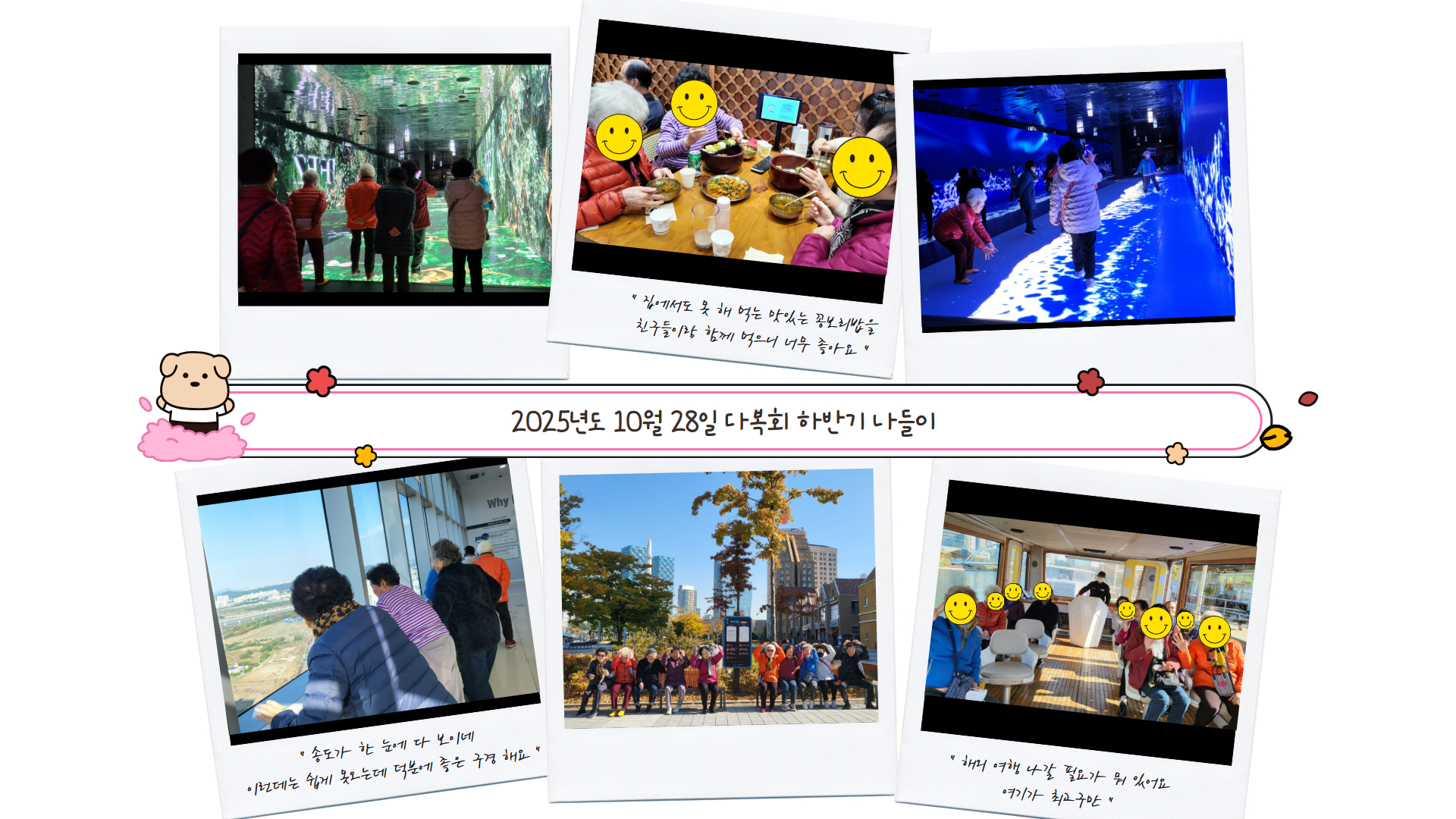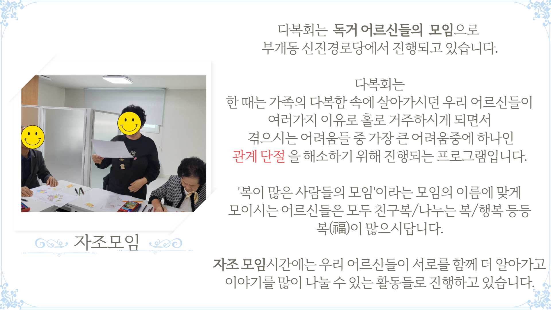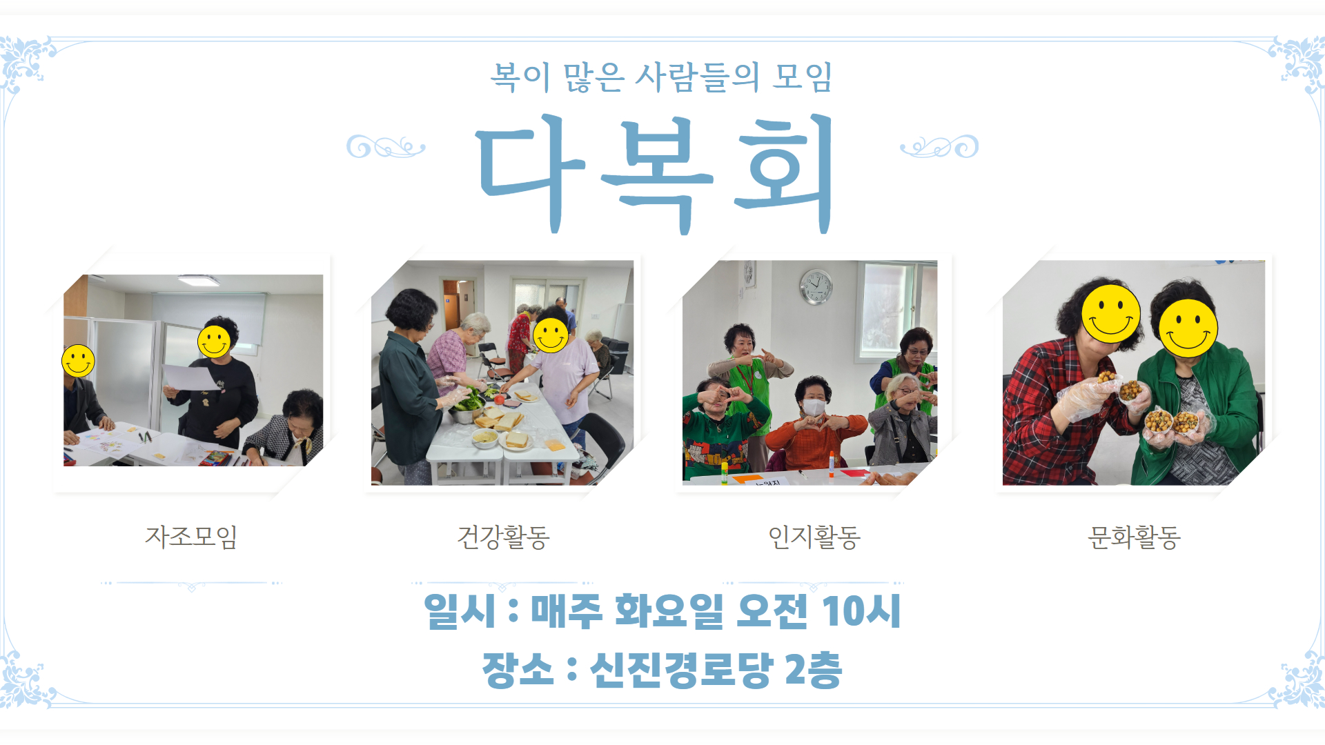 복이 많은 사람들의 모임 "다복회"는 오늘도 서로가 서로의 복이 되어주며 단란한 시간들을 보내고 있습니다.