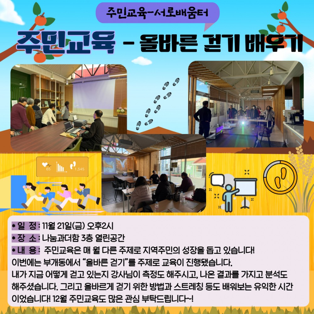 11월 한 달 동안 복지관 곳곳에는 주민들의 따뜻한 참여와 웃음소리가 가득했습니다.