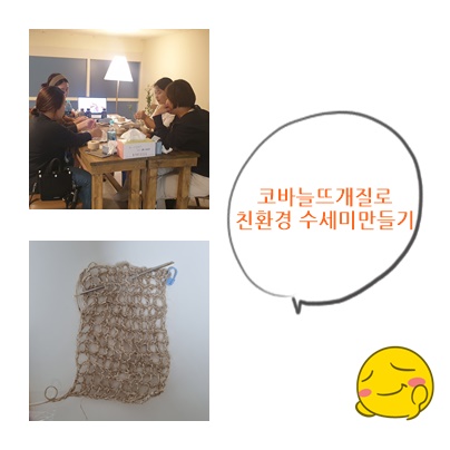 친환경소재로 수세미뜨개질도 해보고요.