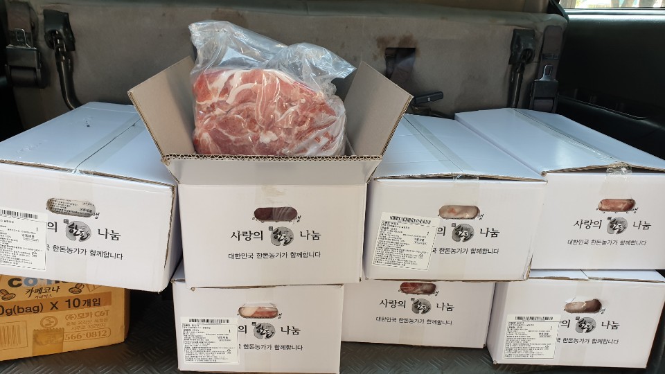 인천관협을 통해 코로나19극복 응원 한돈 돼지고기를 지원 받았습니다. ^^