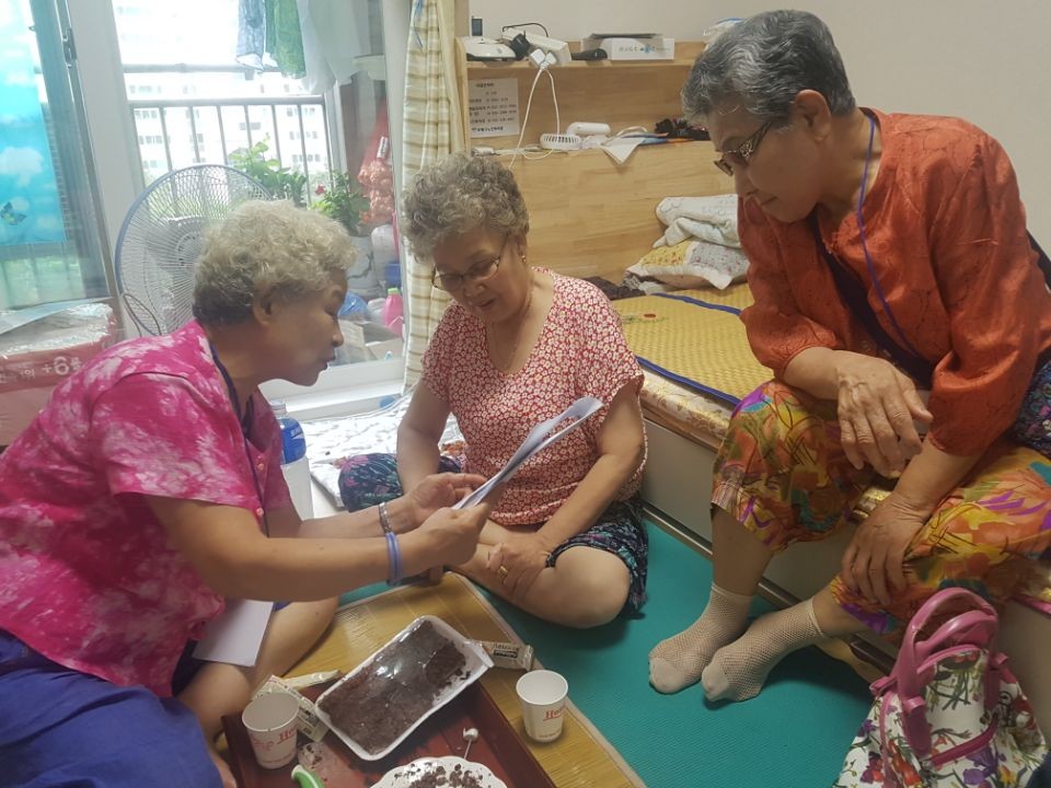 이윽고 첫 신규입주민 가정방문이 이루어지게 되었습니다. 처음 신규입주민 두 분은 아직도 잊을 수 없네요. 한 분은 귀가 어두운 독거남성어르신이셨고 또 다른 한 분은 러시아에서 온 외국인이었습니다. 둘 다 대화를 나누기 힘든 분이어서 어떻게 소통을 할지 고민했는데 몸짓발짓 섞어가면서 하다 보니 결국은 뜻이 통하면서 함께 어울려주셨습니다. ‘웰컴투삼산’의 대표 활동은 역시 신규입주민 가정방문입니다. 신규입주민에게 선물과 함께 마을정보를 알려드리고 이웃들에게 즉흥적으로 떡을 돌리는 활동을 진행했는데요. 사실 단지 내 경제적으로 힘든 분이 많으셔서 이사 오신 뒤에도 이웃들과 인사 한 번 못 나눈 케이스가 다수였습니다. 우리 ‘웰컴팀’은 여기에 초점을 맞춰 옆집 이웃에게 함께 문을 두드려주는 역할을 하였습니다. 물론 연계한다고 해서 모든 신규입주민이 집 안으로 들어오는 걸 허락해준 것은 아니었습니다. 그럼에도 꾸준히 활동한 결과 올해 가정방문한 신규입주민 수를 세보니 16분이더군요. 앞으로도 더 많은 신규입주민들과 함께 하길 희망합니다. 참, 위에서 말씀드린 신규입주민과 관련된 에피소드가 떠오르네요. 남성어르신은 담당자가 홀로 처음 집에 방문했을 때 이사 온지 3개월이 지났음에도 정리가 하나도 안 돼 있었습니다. 거실 한가운데에 침대가 놓여 있어 앉을 자리가 없었고 쓰레기도 가득했습니다. 그래서 ‘웰컴팀’에게도 미리 집 방문했을 때 당황하지 말라고 일러두었죠. 그러나 웬걸 재방문 당시 집이 너무 깨끗하게 치워져있는 것이었어요. 알고 보니 미루던 집 청소를 손님이 온다고 하니까 교회에 직접 도움을 청한 뒤 정리를 다 해놓으신 거더라고요. 간접적으로나마 집 청소에 기여할 수 있었습니다. 앞으로도 주민 스스로 자신의 삶을 변화시키는 모습이 사회복지 현장에서 더욱 보였으면 좋겠습니다.