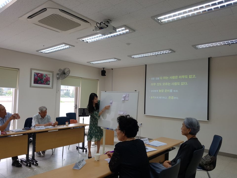 5월 29일을 시작으로 7회기 동안 여러 교수님들의 인문학교육을 통해 선배시민이 무엇인지 선배시민으로서 어떤 역할을 해야 하는지 ‘자각’하고, ‘학습’하고, ‘소통’하는 시간을 가졌습니다.