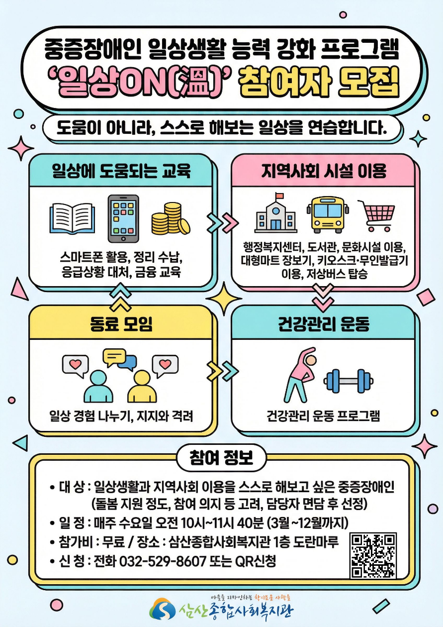 중증장애인 일상생활 능력 강화 프로그램 ‘일상ON(溫)’ 참여자를 모집합니다.