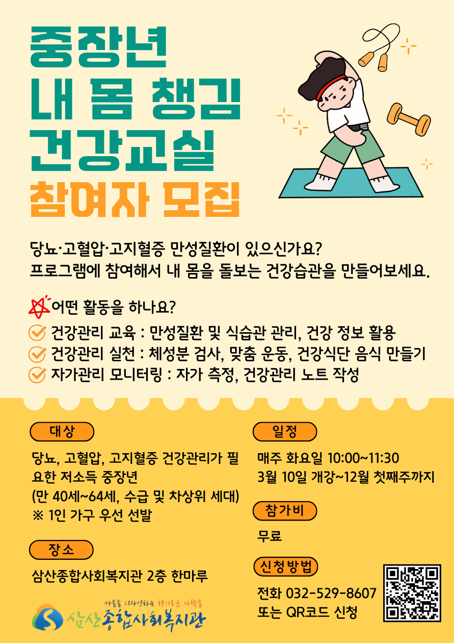 중장년 만성질환 건강관리 프로그램「중장년 내 몸 챙김 건강교실」참여자를 모집합니다.