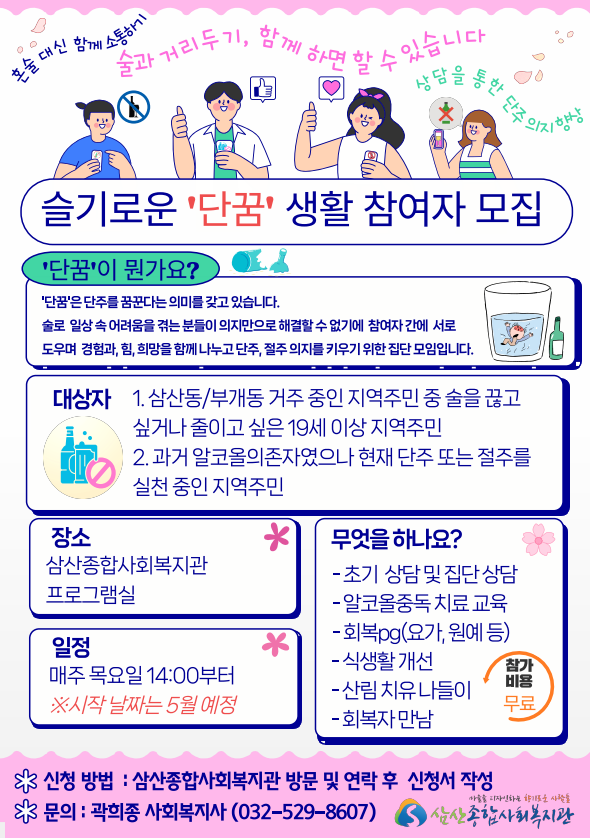 1. 참여 대상 : 술을 줄이거나 끊고 싶은 의지가 확인된 19세 이상 지역주민 10명