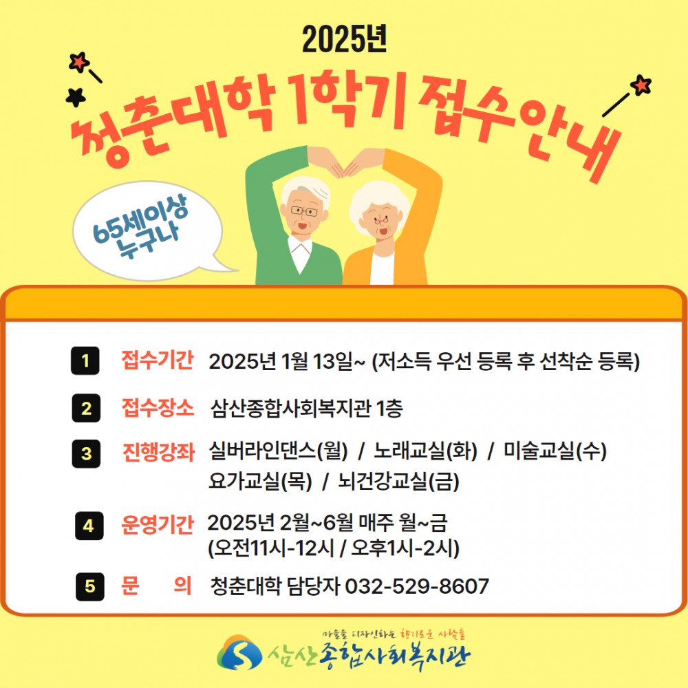 2025년 1학기(2월~6월) 청춘대학 참여자를 모집합니다.