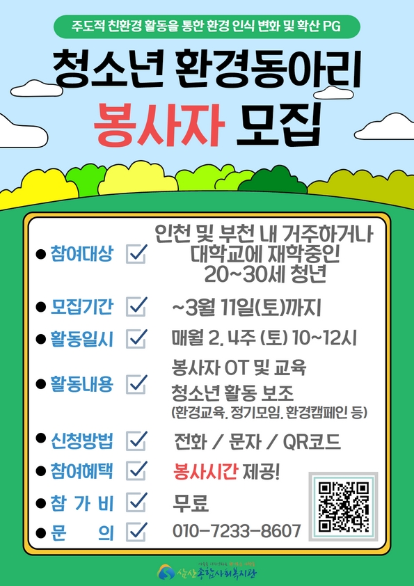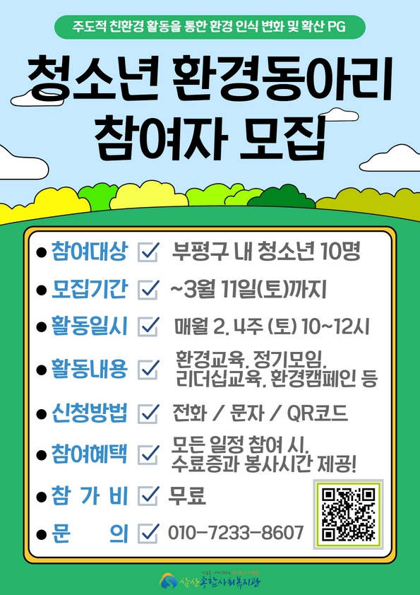 2023년 본관에서는 환경에 관심이 있는 청소년 10명, 서포터즈 5명과 함께 '청소년 환경동아리' 프로그램을 진행합니다! (★선착순 모집!★)