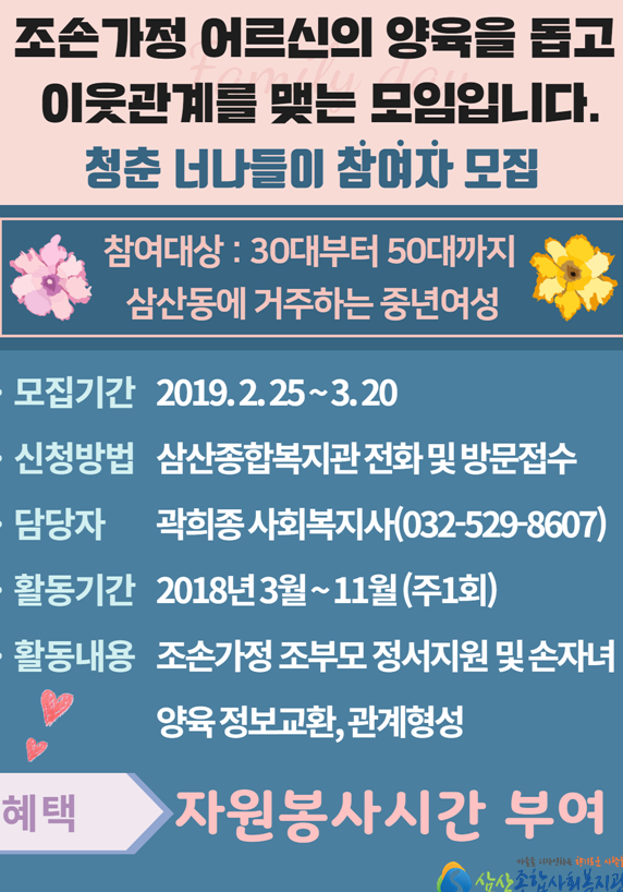 19년도 조손가정 연계 중년여성봉사자 모집 공고