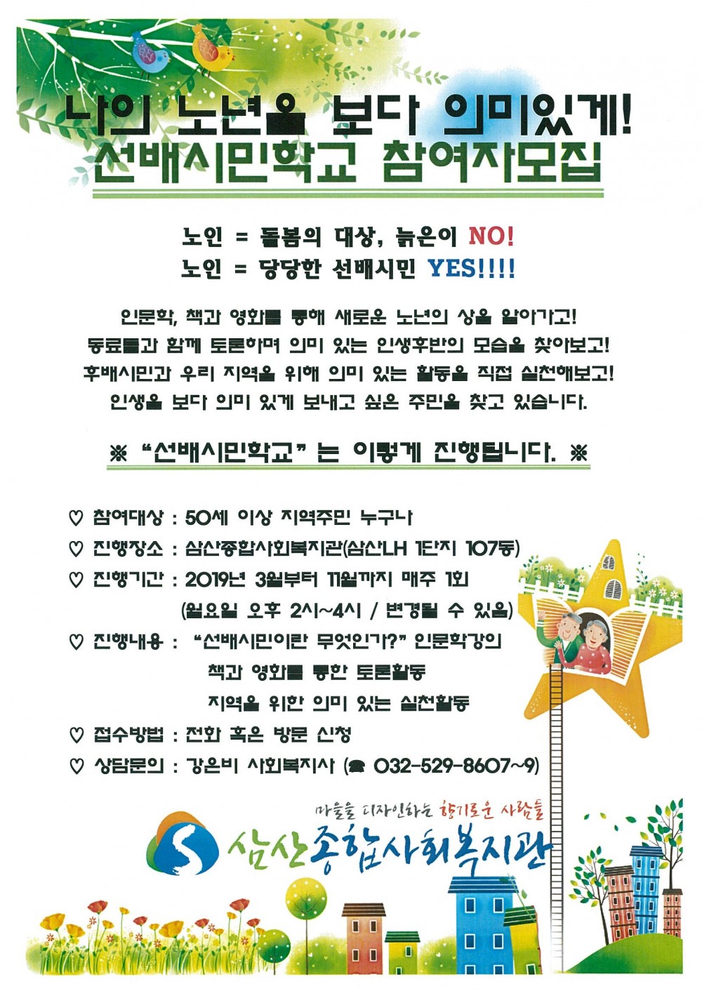 선배시민학교 "나의 노년을 보다 의미있게!" 참여자 모집
