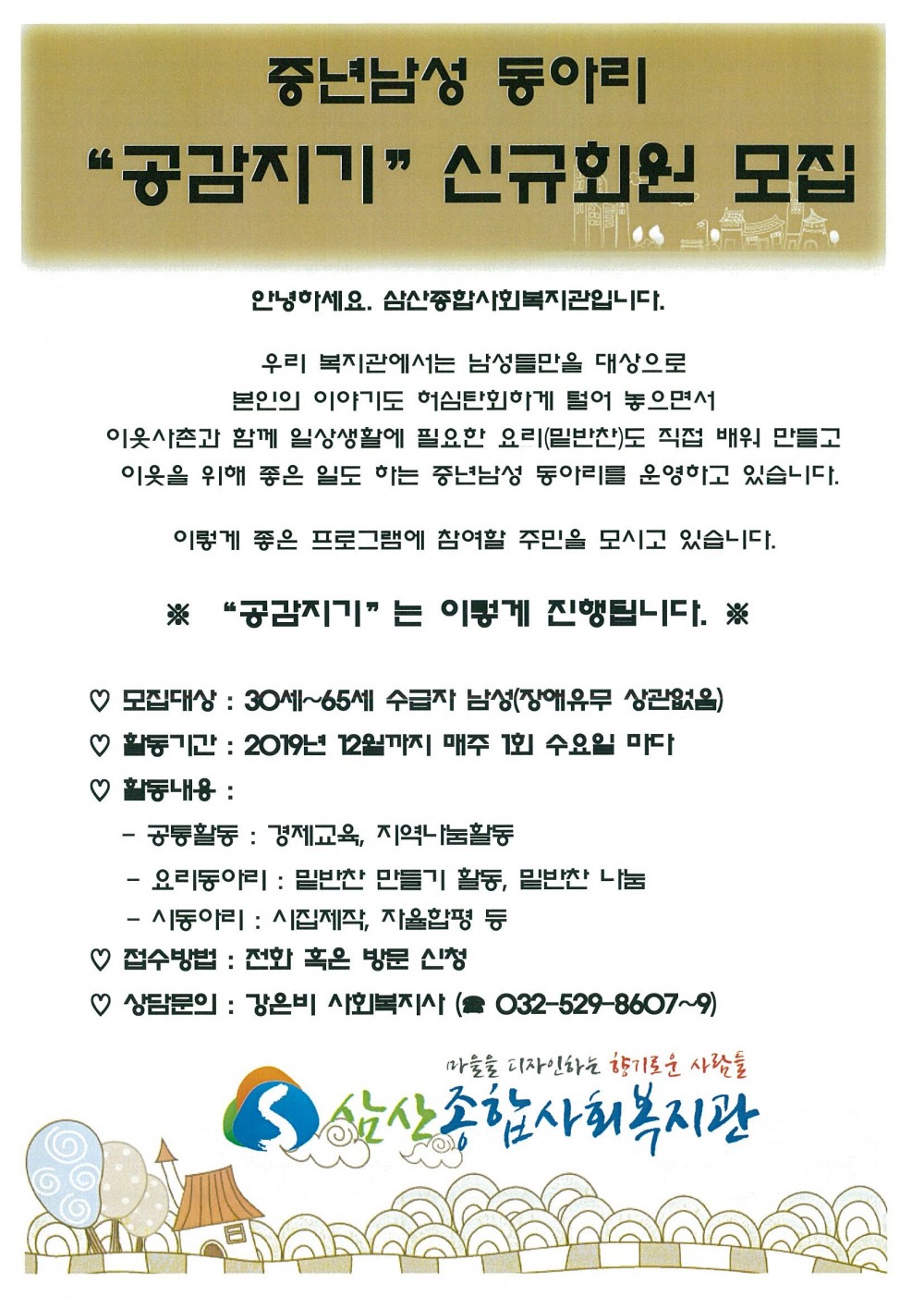 공감지기 참여자모집(30대~60대 수급자 남성)