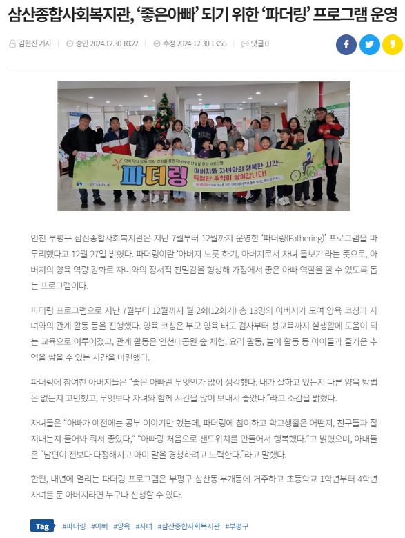 (보도자료-미디어생활) 삼산종합사회복지관, ‘좋은아빠’ 되기 위한 ‘파더링’ 프로그램 운영