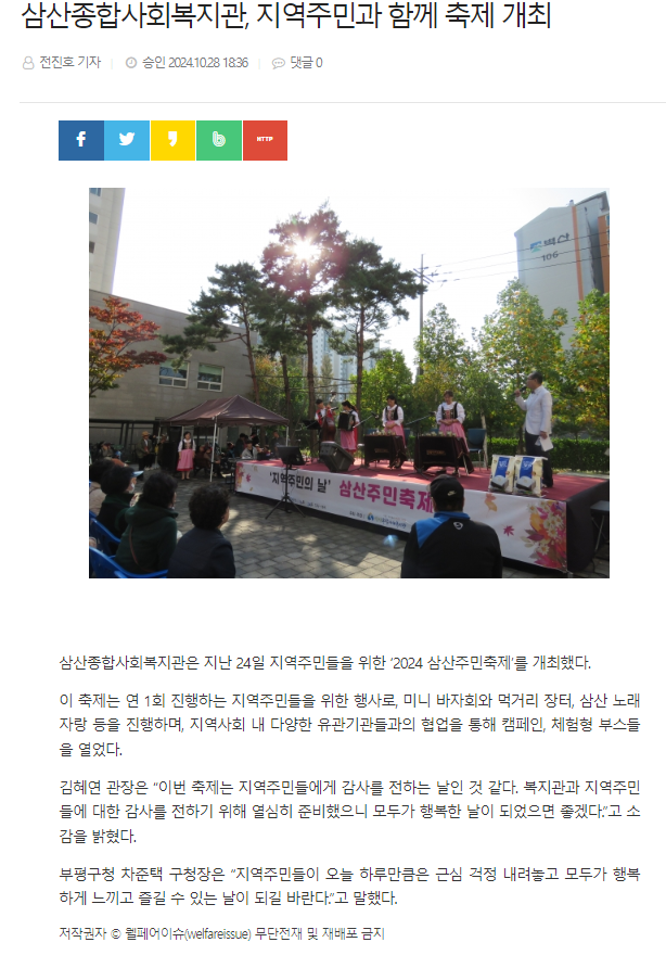 삼산종합사회복지관, 지역주민과 함께 축제 개최 - 웰페어이슈(welfareissue)