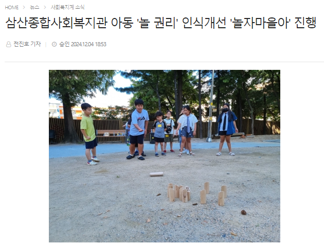 [보도자료 - 웰페어뉴스] 삼산종합사회복지관 아동 '놀 권리' 인식개선 '놀자마을아' 진행