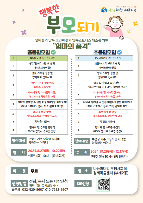 삼산복지관에서는 부평구 양육을 하고 계시는 어머님들을 대상으로