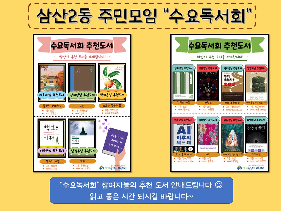 ◎평소 책을 읽고 싶었는데 혼자 읽기는 어려웠다거나, 책에 관심있는 삼산2동 주민분들의 많은 관심 부탁드립니다.
