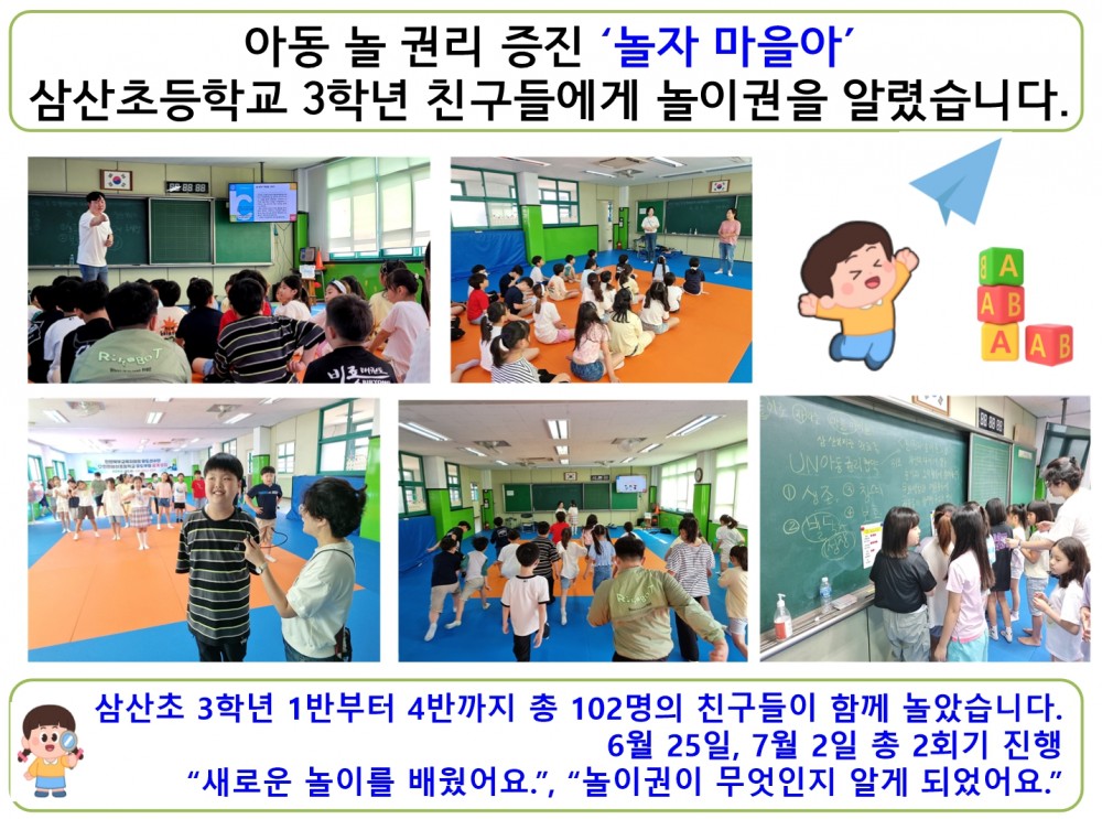 삼산초등학교 3학년 친구들과 즐거운 놀이 수업을 진행했습니다.