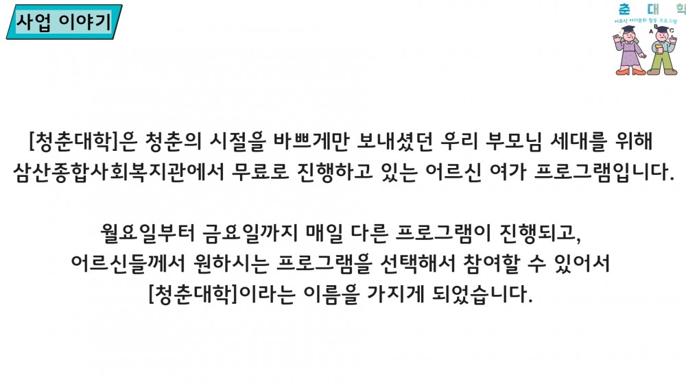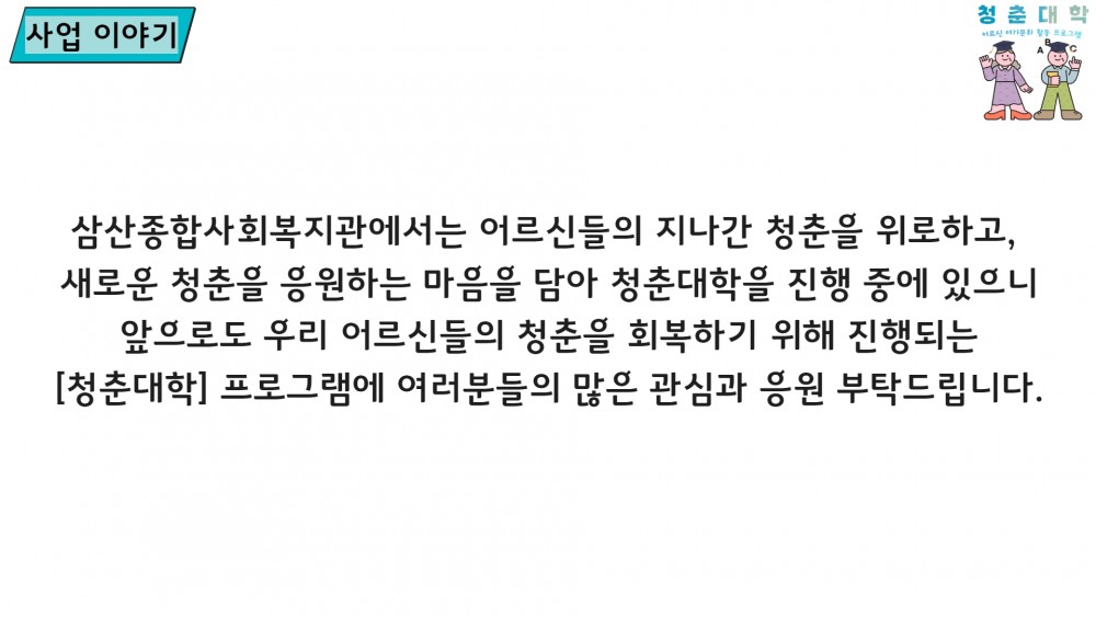 삼산종합사회복지관이 함께하는, [청춘대학] 프로그램이었습니다.