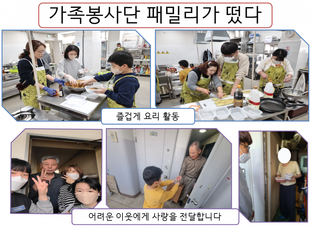 앞으로도 저희 가족봉사단 ‘패밀리가 떴다’는 어려운 이웃들에게 사랑을 전달하는 봉사 단체가 되고 싶습니다. 지역주민 여러분도 항상 관심과 사랑으로 지켜봐 주시고 응원 부탁드립니다.
