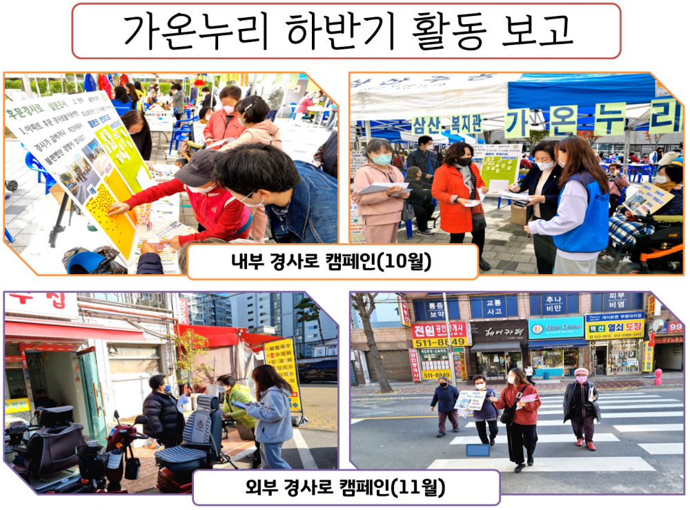 가온누리는 하반기에도 많은 활동을 통해 경사로의 필요성을 알리고 무장애길 탐방을 통해 ‘베리어프리’를 실천하고자 노력하였습니다.
