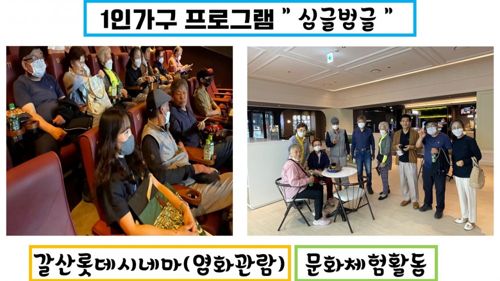 5월 넷째주에는 복지관 인근 갈산롯데시네마로 영화관람하는 시간을 가졌습니다.
