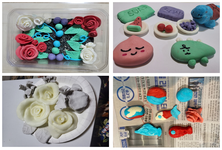 활동을 마치고 가정에서 손주들과 주물럭 비누를 만들어 단체 카톡방에 인증하며,