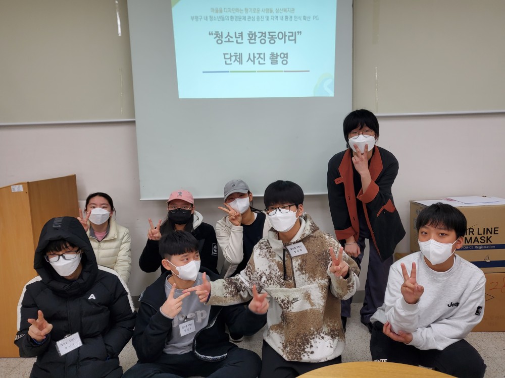 청소년 환경동아리는 올해 처음 시작한 프로그램으로, 환경에 관심있는 부평구 내 청소년(중학생, 고등학생)들이 모여 환경문제에 대한 관심을 증진하고 지역 내 환경 인식을 확산하기 위한 모임입니다:) 본관 1층 도란마루에 모여 개강식을 진행했는데요, 복지관과 프로그램 소개를 통해 세부 활동내용을 확인할 수 있었고 자기소개 진행을 통해 서로 알아가는 시간을 가졌습니다. 현재 본 프로그램에 참여 가능한 소수의 청소년들을 추가 모집하고 있다고 합니다! 본 모임에 참여를 원하는 중학생, 고등학생 청소년은 연락주세요! (032-529-8607 김혜원 사회복지사)