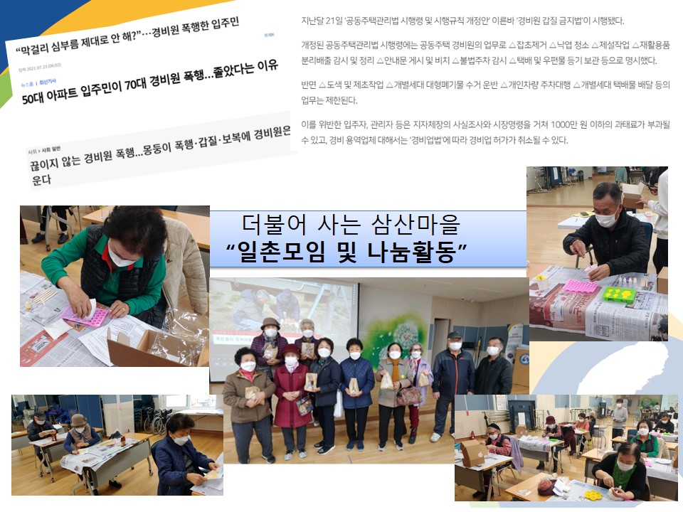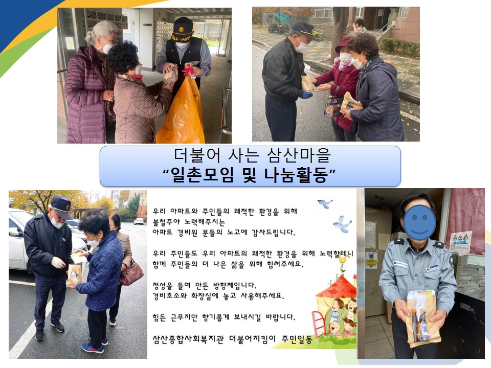 내용 : 더불어 사는 삼산마을 – 일촌모임 나눔활동 “경비인력 감사인사 전하기”