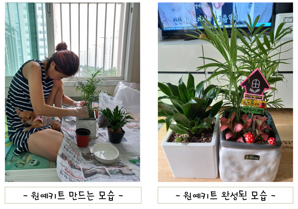 내용 : 코로나 시국에 참여자들의 심리적 안정을 돕고 원예키트 만드는 과정이나 완성품을 서로 간에 공유함으로써 친밀감을 쌓고자