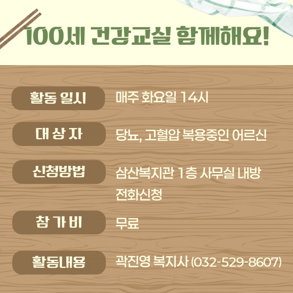 100세 건강교실에 함께 할 참여자분들 기다리겠습니다 ❤