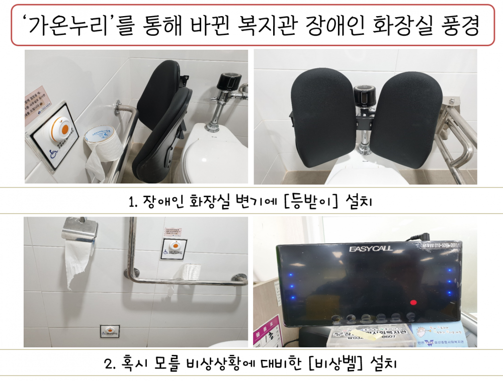 그 분들이 저희 복지관을 이용하면서 장애인 화장실의 불편함을 건의하였습니다.