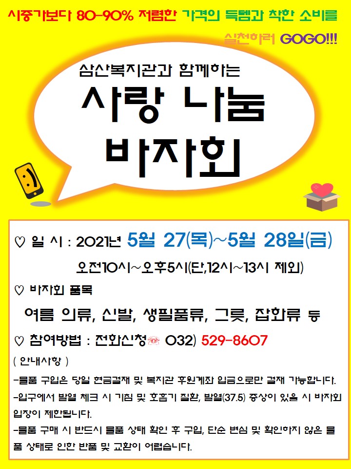 안녕하세요 삼산복지관 입니다.