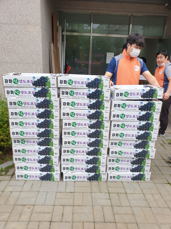 임직원들이 농가에 직접 방문하여 수확한 강화섬포도 5kg, 50박스를 후원해주셨습니다.