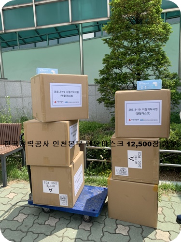 한국전력공사 인천본부는 인천사회복지공동모금회 지정기탁으로 지난 6월, 인천광역시사회복지협의회를 통해 본 기관에 덴탈마스크 12,500장을 기부하였습니다.