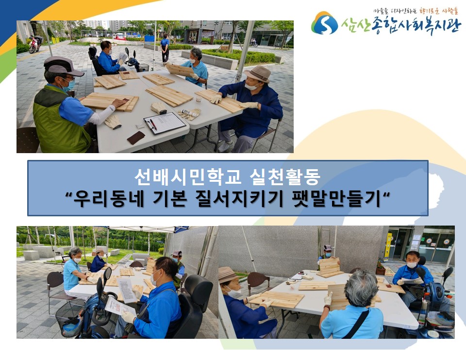 "우리동네 기본질서지키기" 나무 팻말을 다듬는 사포질을 하였습니다.