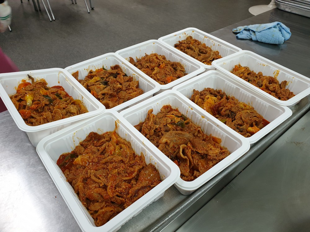지원 받은 돼지 고기는 본 기관에서 코로나19로 인해 매주 월요일 도시락, 무료급식 어르신 210명 식생활 이용 주민에게