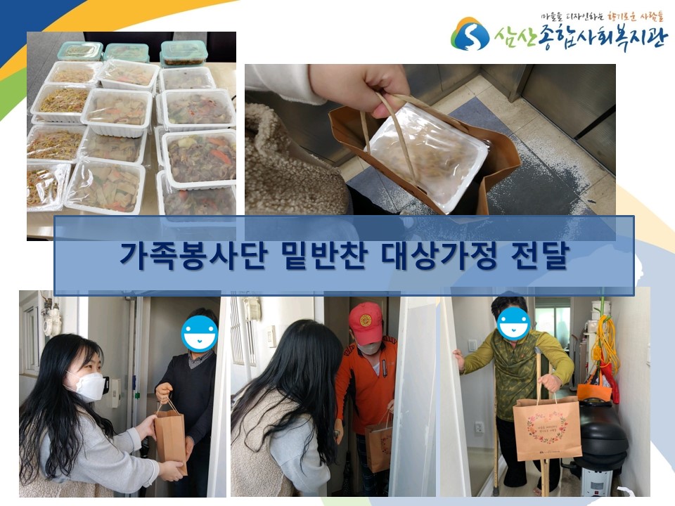 한 달에 두 번 가족들이 복지관에 모여 지역에 밑반찬 지원이 필요한 독거남성들을 위해