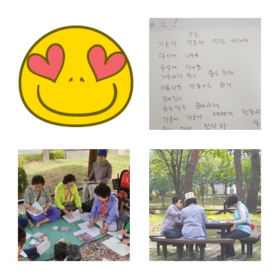 어르신과 함께 가을을 느끼기 위하여 가까운 시냇물공원을 산책하고 가을에 관한 시쓰기 백일장을 가졌어요~