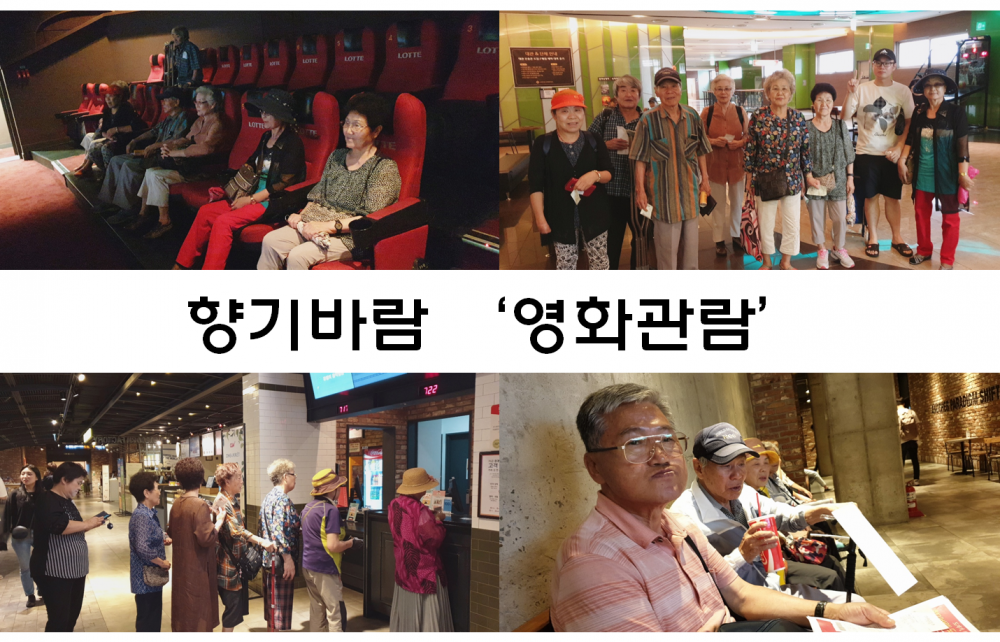 저희 향기바람에는 그동안 수많은 지역주민들과 함께 하였는데요. 참여자 대부분은 중년 남성, 독거노인 및 장애여성 등 다양한 계층이 참여하셨고 영화나 공연 및 공예체험, 아쿠아리움 관람, 합창단 공연 등 여러 가지 여가문화 활동을 진행하였습니다. 한 주민은 20년 넘게 영화를 본 적이 없다가 향기바람을 계기로 오랜만에 영화관 나들이를 다녀오셨다고 합니다. 또 한 어르신은 태어나 처음으로 합창단 공연을 보면서 옛 추억에 잠겨 눈물을 흘리시기도 하였습니다. 담당자로서 하나 느낀 점은 활동 전과 후의 주민들의 표정변화인데요. 더 많이 웃고 밝은 모습으로 문화체험활동 소감을 들을 때마다 담당자로서 더 큰 힘이 생깁니다. 외부에서만 진행되다보니 여러 가지 우여곡절도 많았지만 문화예술이라는 커다란 테두리 안에서 주민들과 폭넓은 소통의 장이 열릴 수 있었습니다. 문화 체험 기회를 제공하고 잊지 못할 추억을 선사해드린 향기바람은 앞으로도 더 많은 이야기로 찾아뵙겠습니다. ^^