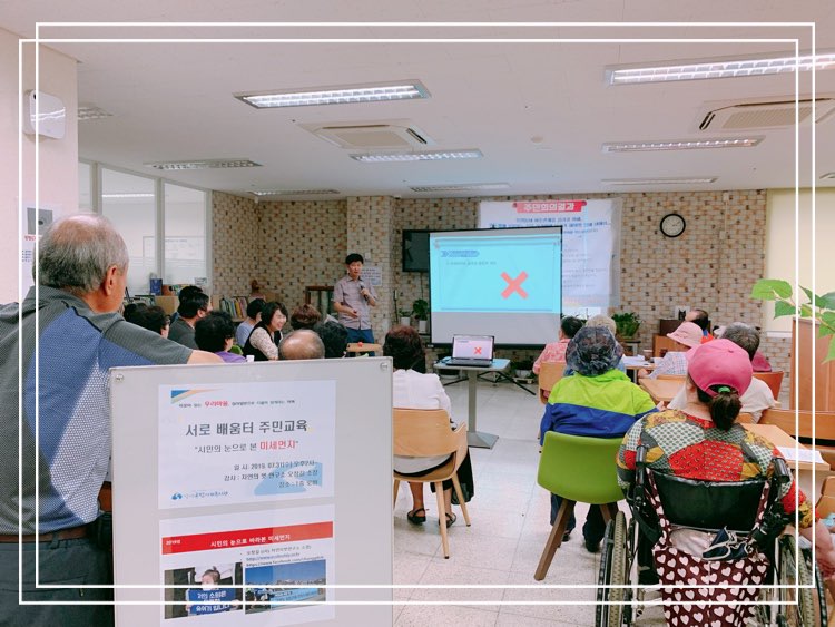 복지관 로비에서는 최근 몇 년 사이 이슈가 되고 있는 미세먼지 관련하여 자연의 벗 연구소 오창실 소장님의 주민 교육이 진행되었습니다.