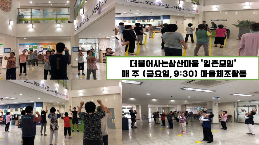 · 내용 : 매 주 금요일 아침 9시 반부터 마을체조활동이 진행됩니다!