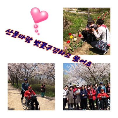 집에만 있던 어르신들은 소풍 온 아이들처럼 벚꽃나무아래에서 사진도 찍고요