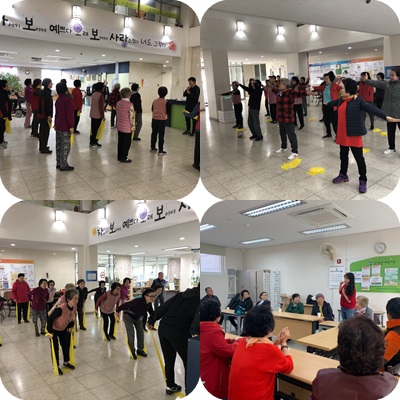 복지관 1층 도란마루에 체조하는 사람들로 북적였습니다 :)