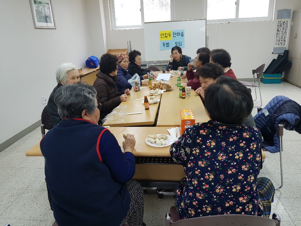 2019년 2월19일에 연합동 모임을 하였습니다. 정성껏 준비해온 간식을 나누어 먹으며 생활나눔을 하였습니다.