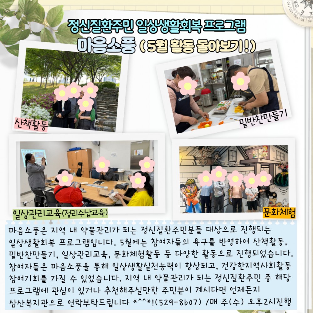 일상생활회복 프로그램입니다. 5월에는 참여자들의 욕구를 반영하여
