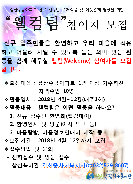 삼산주공아파트 신규 입주민 주거적응 및 이웃관계형성을 위한 웰컴팀 참여자 모집