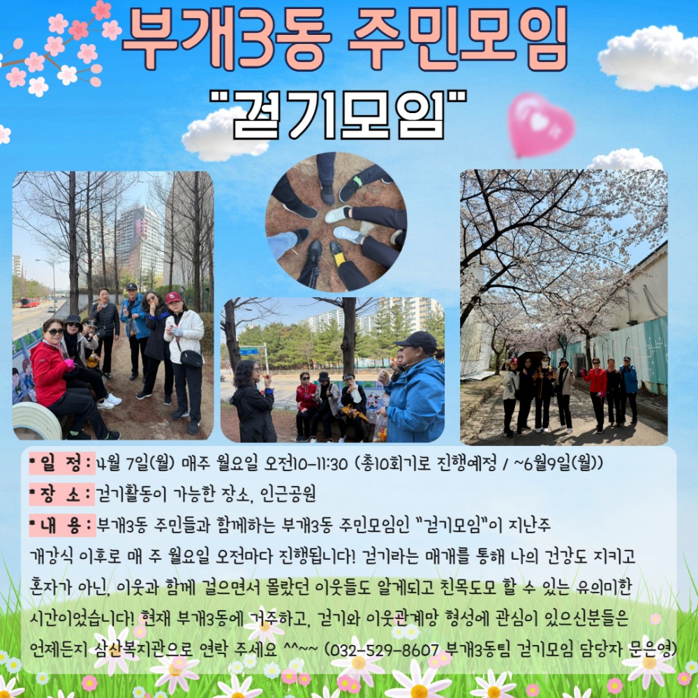 시간이었습니다! 현재 부개3동에 거주하고, 걷기와 이웃관계망 형성에 관심이 있으신분들은