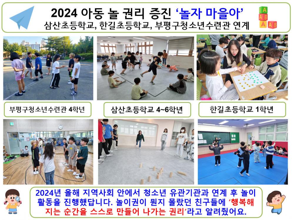 연계 기관 : 부평구청소년수련관 4학년, 삼산초등학교 3~6학년, 한길초등학교 1학년