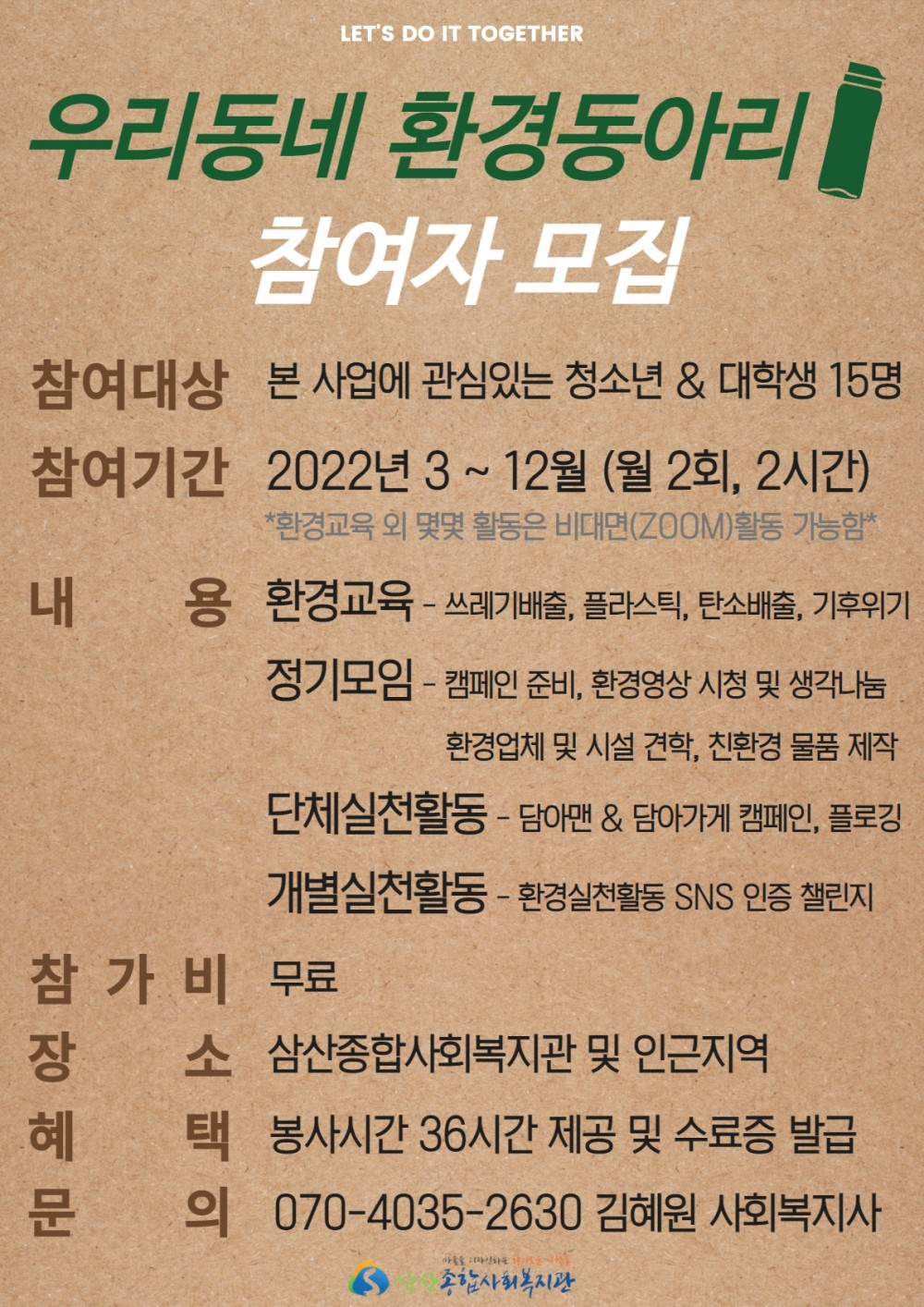 "우리 동네 환경동아리"는 부평구 내 청소년들과 대학생들이 모여 환경문제를 올바르게 인식하고, 지역에서 다양한 환경실천을 하는 모임입니다!